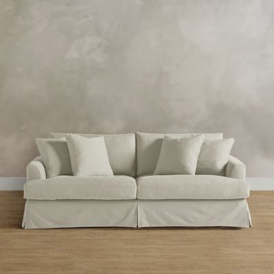 The heavenly softness of a down pillow meets the lifelong durability of performance fabric in our iconic Brynn armchair. We added fun swivel ability to our feather-filled chair for extra versatility. With its slipcover look in your choice of navy or ivory, this down chair will provide comfort and style through years of movie marathons, game nights and cozy evenings.